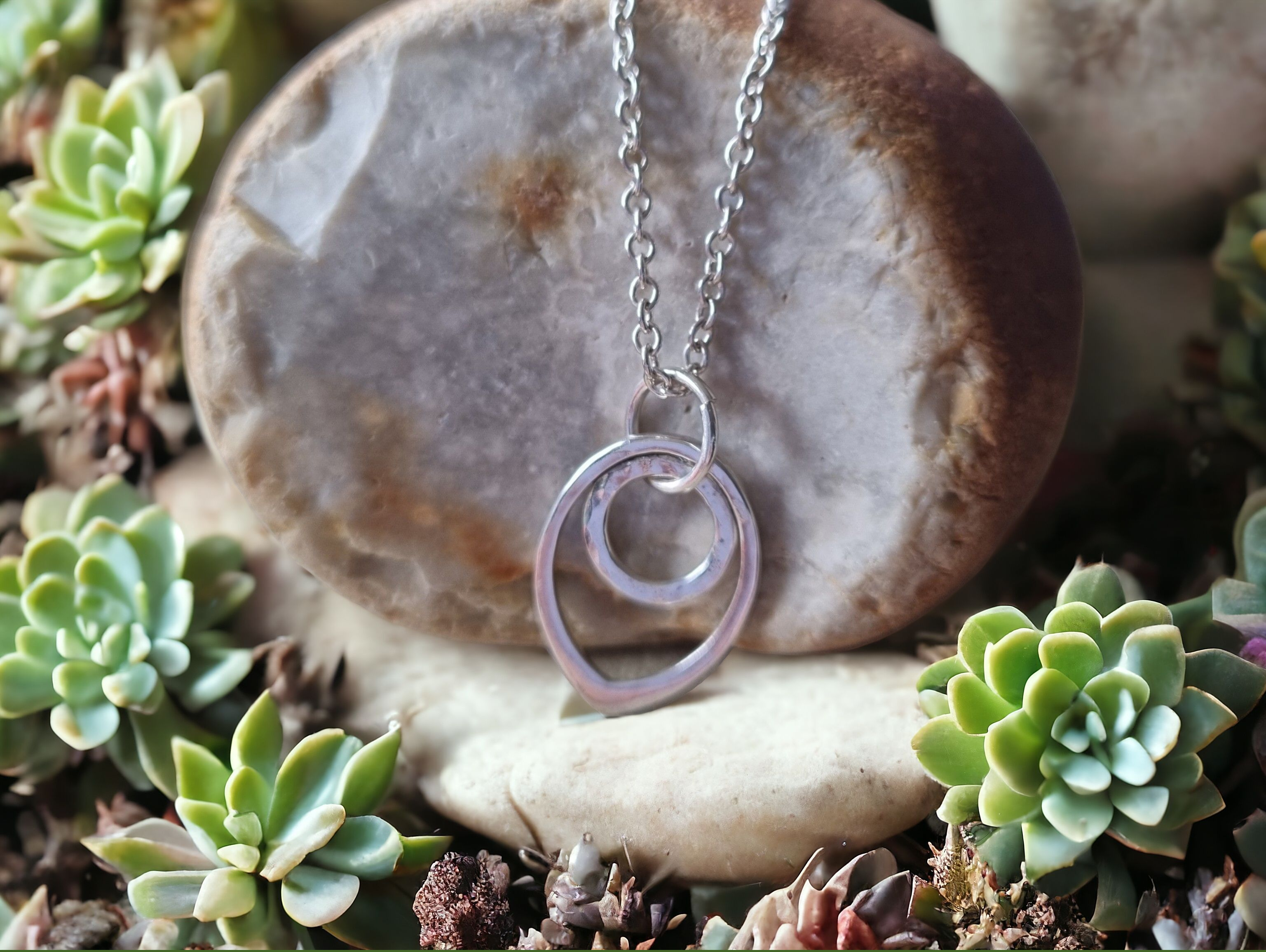Hello, my name is Karen and I am the owner and designer at Kisley Designs. I am based near Dover in Kent. My crafting journey began four years ago with resin, which quickly moved on to gemstones and Silver. I am a self-taught silversmith which gained momentum during the covid pandemic. I also love to work with gemstones and love to include them in my designs. My influences include geometric shapes and designs and I also like organic designs as these are truly unique. I am a registered user of Argentium Silver, which is anti-tarnish, hypoallergenic and recycled silver from industry. I like to use it due to these properties and because it stays brighter and whiter for longer compared to Sterling Silver. Kisley Designs Argentium silver Silver Textured Double Ring Pendant Argentium Silver is hypo allergenic, anti-tarnish and silver recovered from industry.